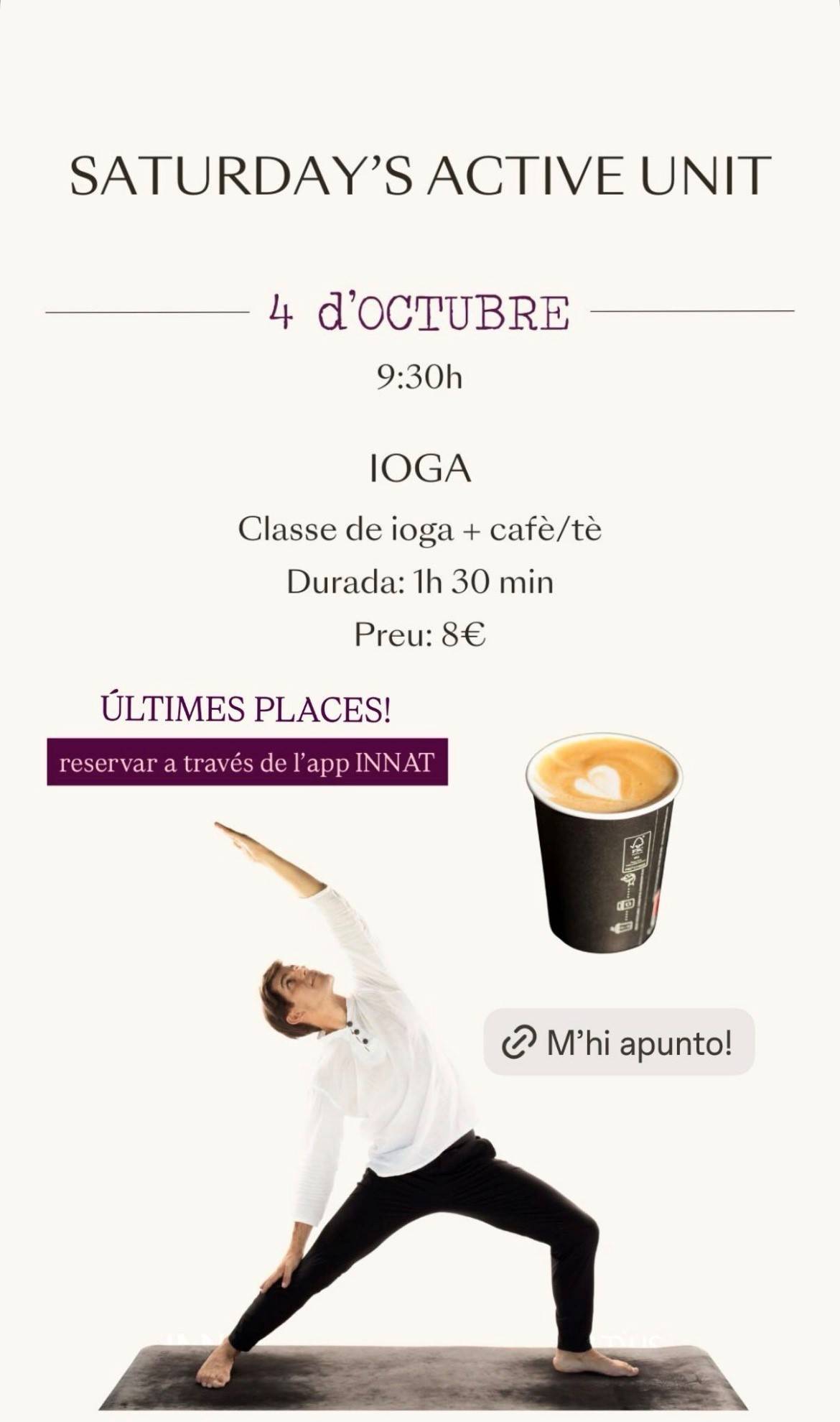 Aquest mes, a Innat et proposem una nova experiència de benestar: Ioga & Coffee. Una activitat pensada per començar el dia amb calma, energia i bona companyia. Estem molt il·lusionats d’oferir-te aquest espai on el moviment conscient i el plaer d’un bon cafè es troben per cuidar cos i ment.